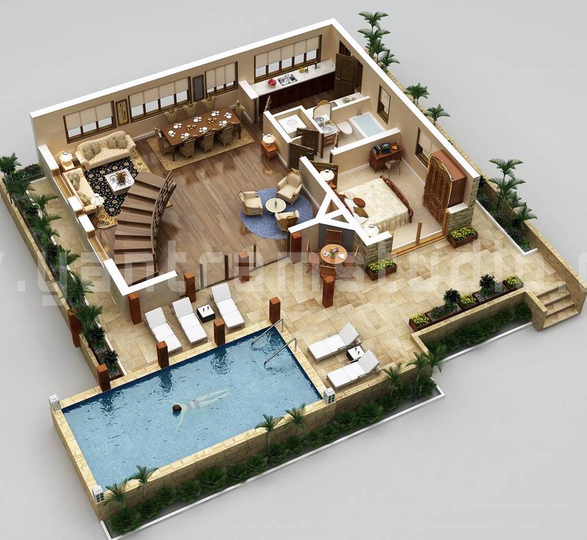 Fabulous Collection Of 3d House Plans With Pool Decor Inspirator