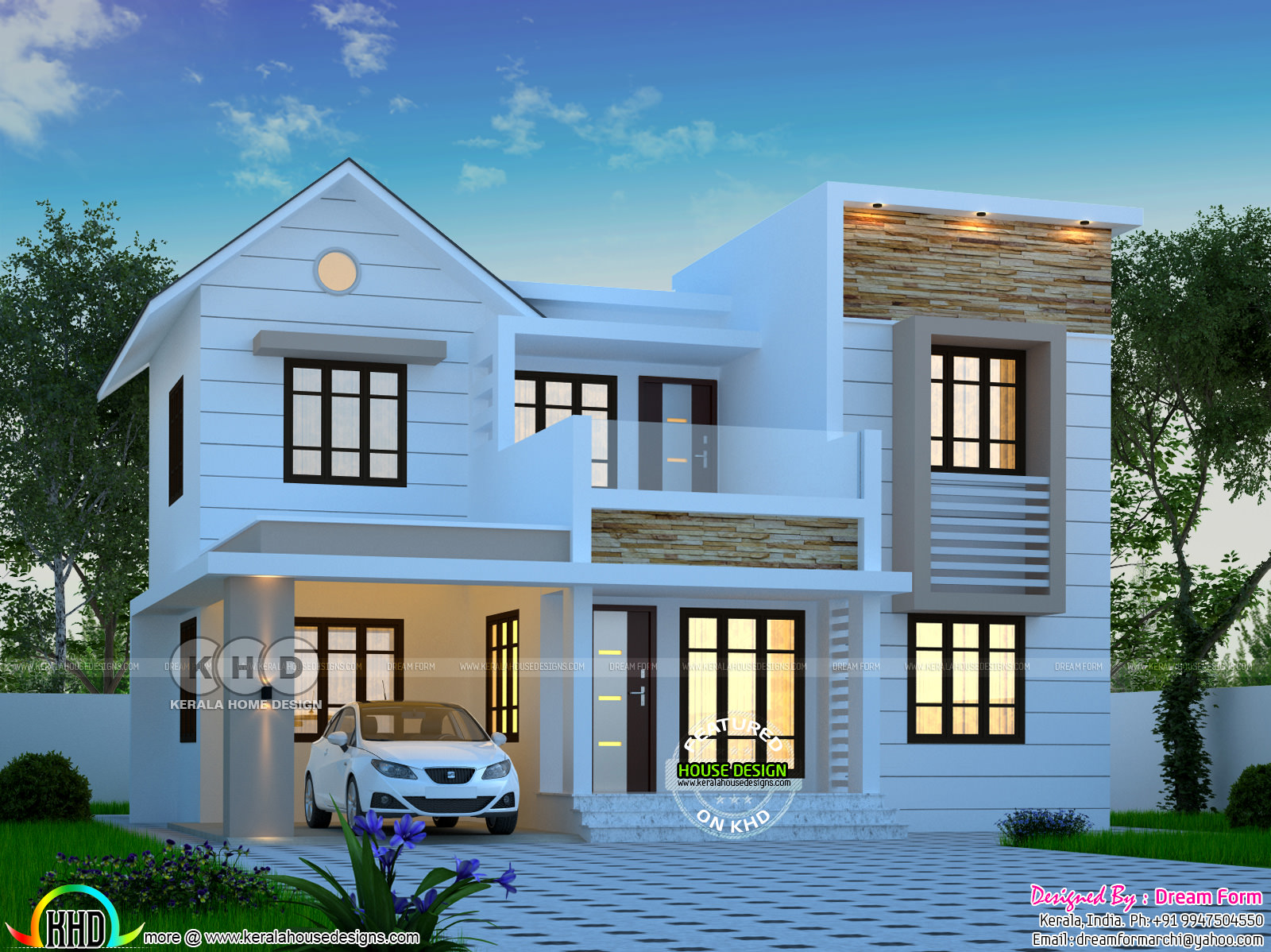 Kerala Style Contemporary Villa Elevation And Plan At 2035 Sq Ft